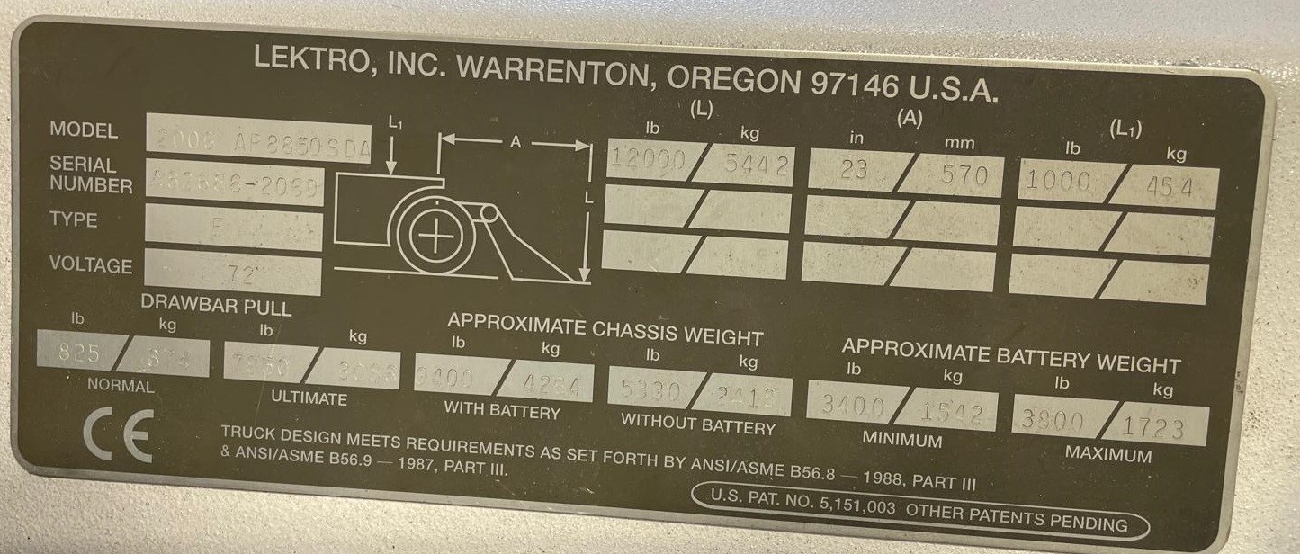 Aircraft Towbarless Electric Tug, Lektro, Model AP8850SDA